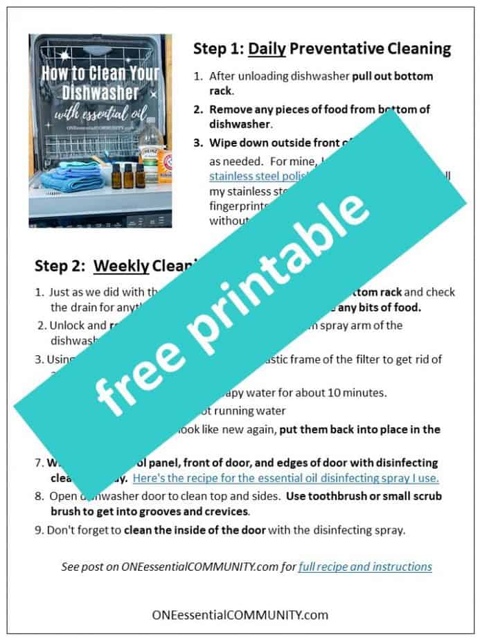 - free printable of how to clean your dishwasher instructions