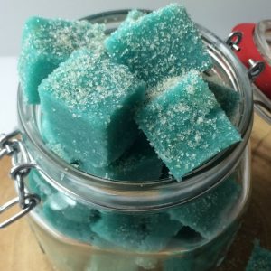 step 14: cut each sugar scrub square into 9 little squares. To do this you’ll make 4 cuts in total, 2 cuts on each side. This recipe makes 36 cubes; that’s enough for 36 showers.