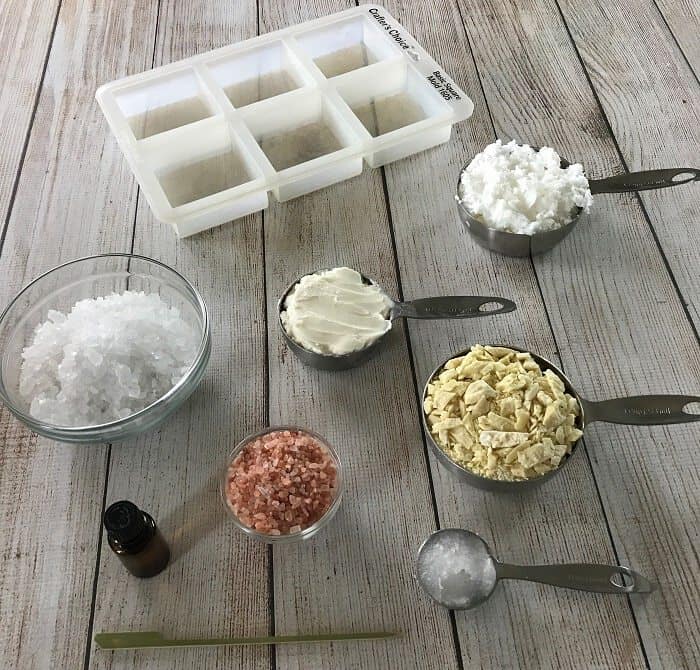 silicone molds- I used Crafter’s Choice basic square mold #1605 in the photos shown in this recipe. You can find that silicone mold here. But don’t worry about using that exact mold. If you have another silicone mold that will make something about the size of a shower bar, then use that mold. It can be round, rectangle, or square. There’s no magic to the specific silicone mold I used.